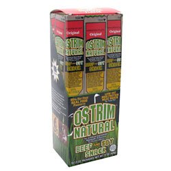 OStrim is the first sports nutrition, low fat, high-protein meat stick made from a combination of Ostrich, a highly nutritious red meat, and the leanest beef available. The 42 gram OStrim Meat Stick contains essential and non-essential amino acids, has high protein (13 grams), is 96% fat free (less than 1.5 grams) with zero carbs (under 3 grams) and less than 1 gram of sugar. OStrim Meat Sticks are shelf-stable (require no refrigeration) and offered in user-friendly packaging for convenience and portability. They taste great, are easy to chew and offer the same, or more nutritional benefits as sports nutrition bars. They are formulated for the serious athlete, physical fitness enthusiast and anyone "on the go" - from kids and soccer moms to weekend warriors. OStrim Meat Sticks are perfect for the high protein, low carb dieter.
