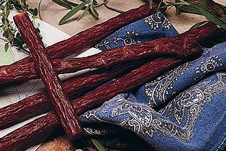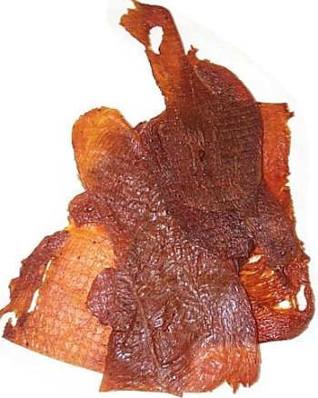 - Made from extra tender, chopped, and shaped beef jerky